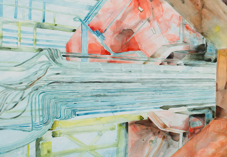 detail of Large Hadron Collider #33, acrylic and pencil on mylar, 36" x 84", 2012