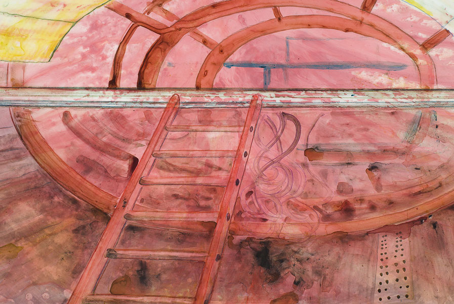 detail of Large Hadron Collider #12, acrylic and pencil on mylar, 36" x 84", 2008
